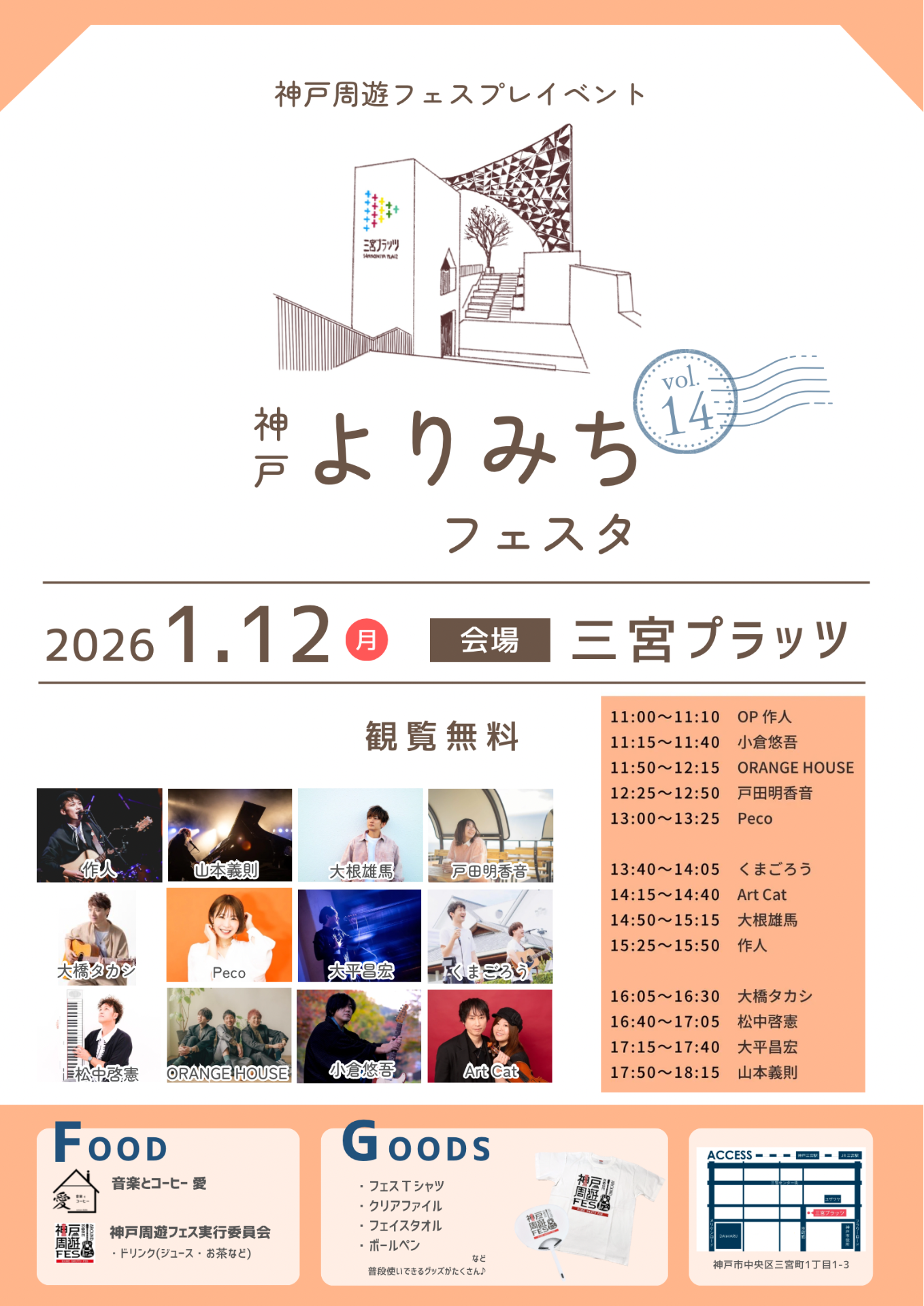 | ■1/12(月・祝)「神戸周遊フェスプレイベント 神戸よりみちフェスタvol.14」 | ここまで----------->|