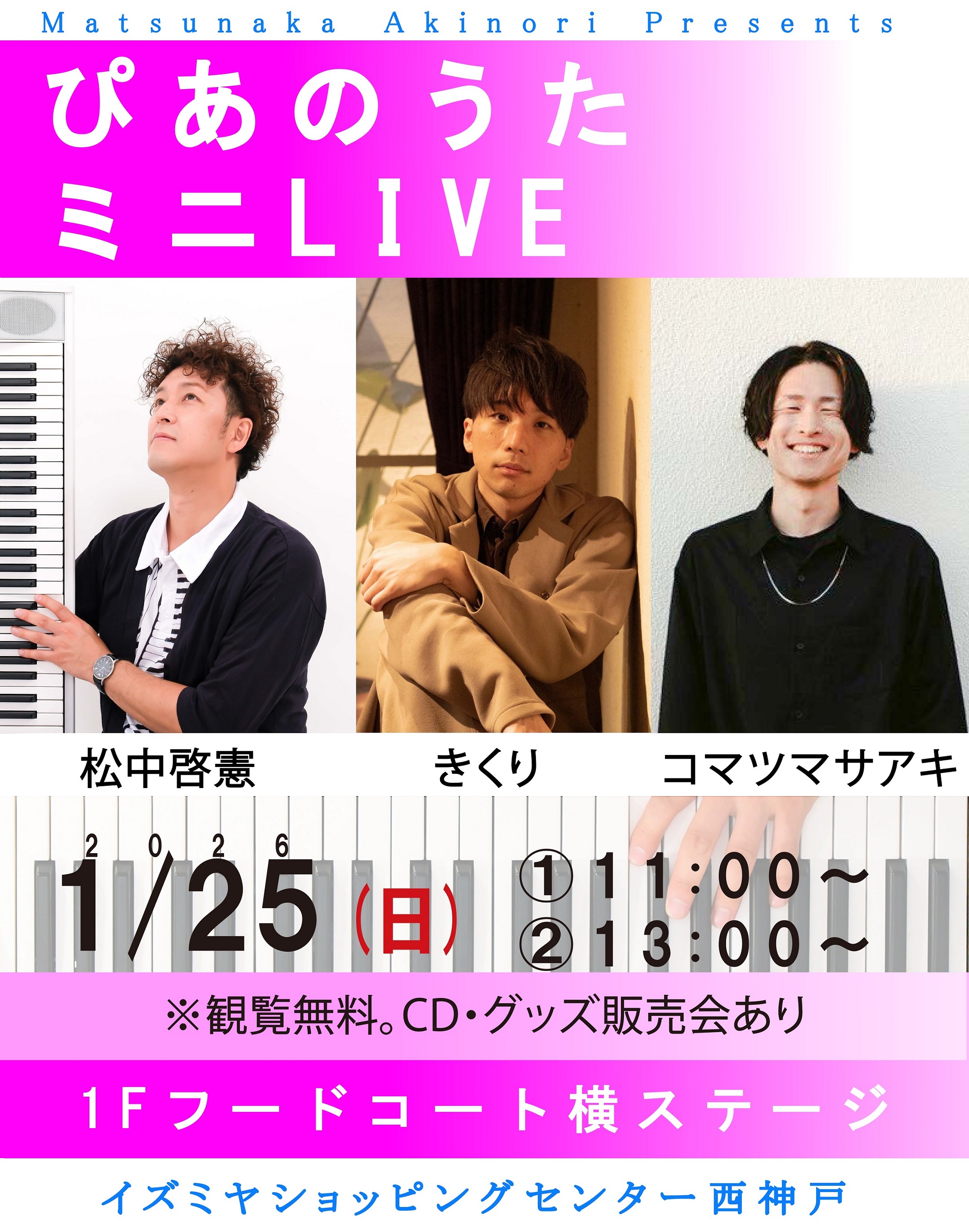 | ■1/11(日)「ぴあのうたミニLIVE」 | ここまで----------->|