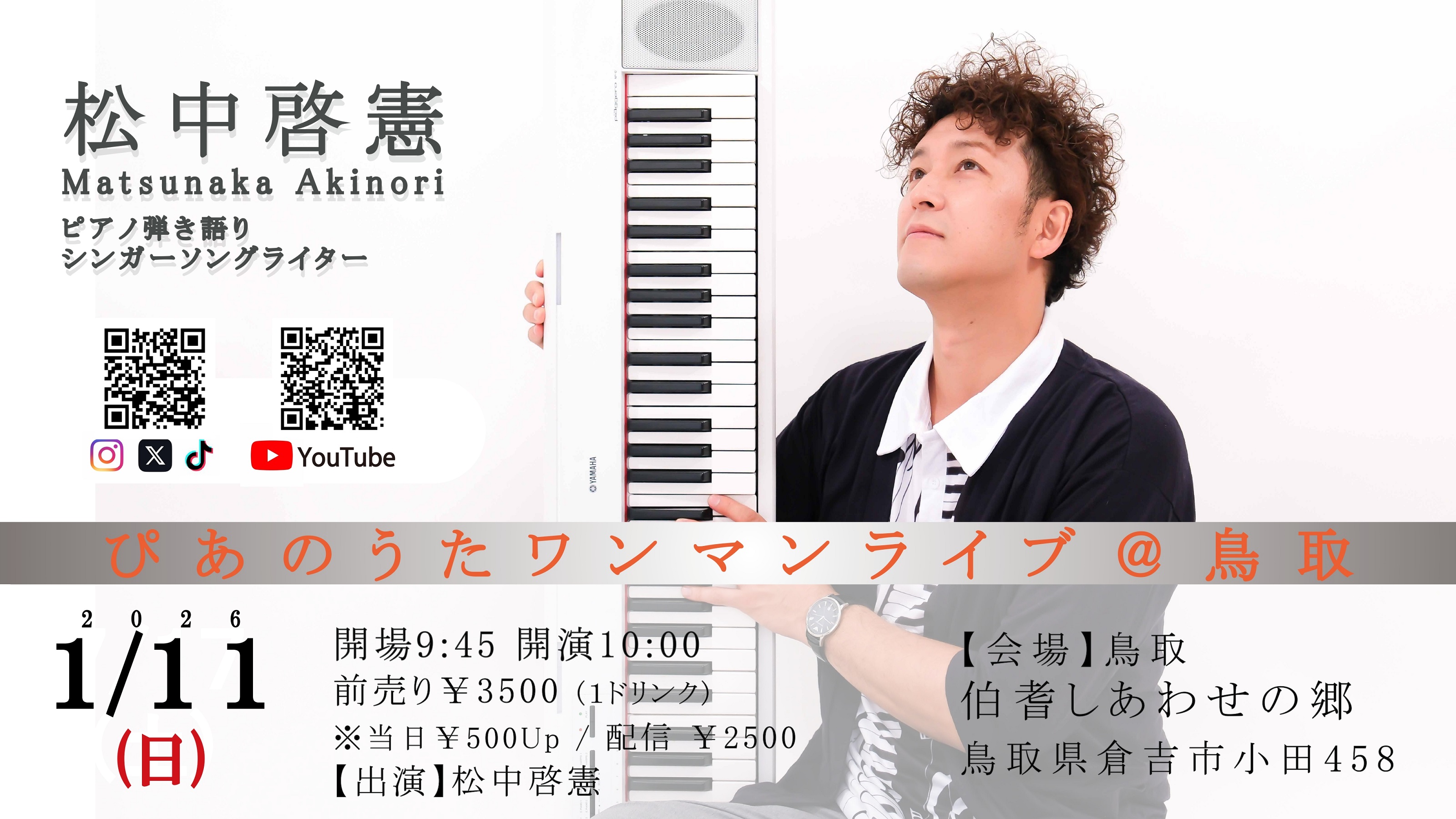 | ■1/11(日)「ぴあのうたワンマンライブ@鳥取」 | ここまで----------->|