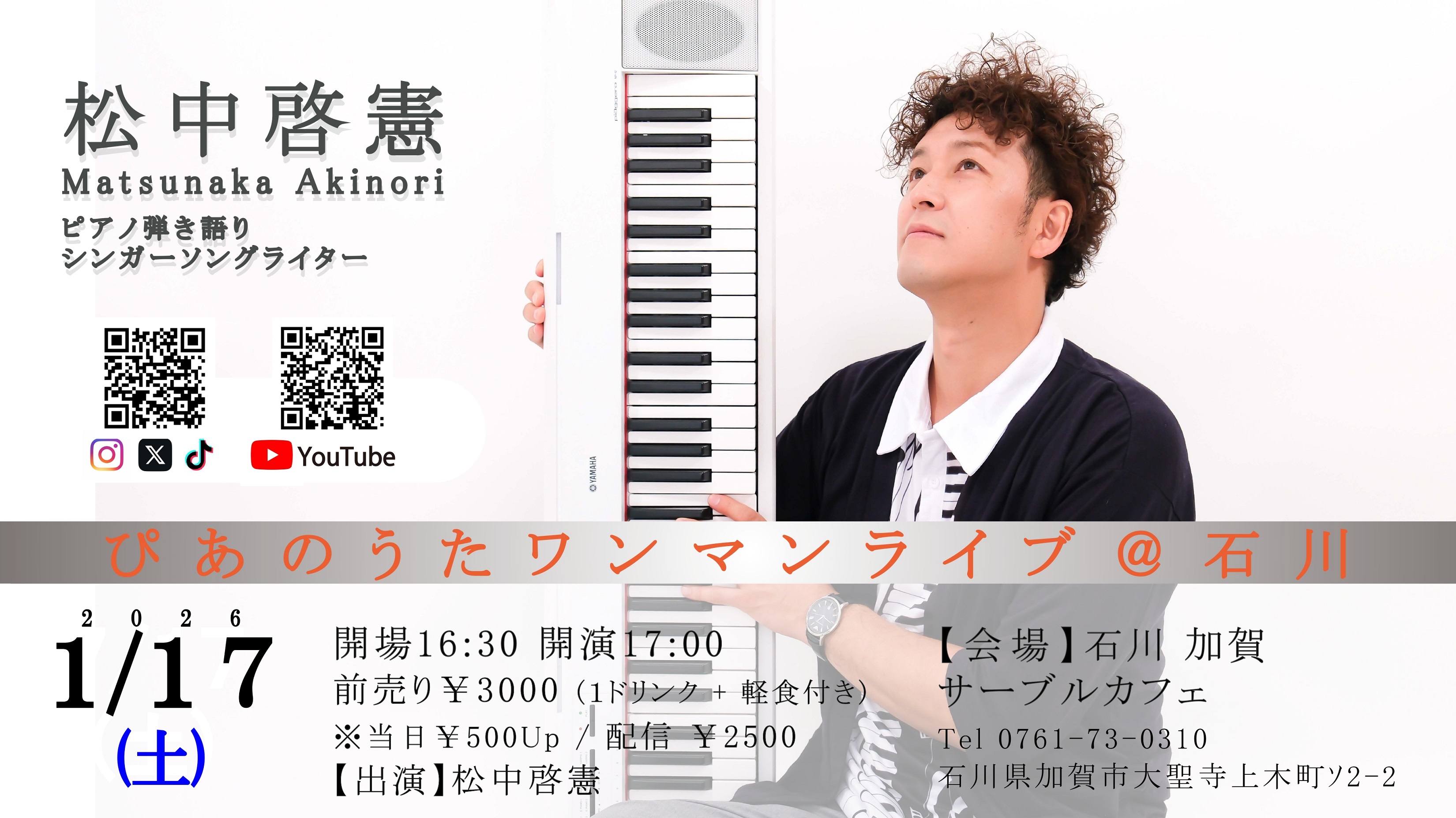 | ■1/17(土) 「ぴあのうたワンマンライブ @石川」 | ここまで----------->|