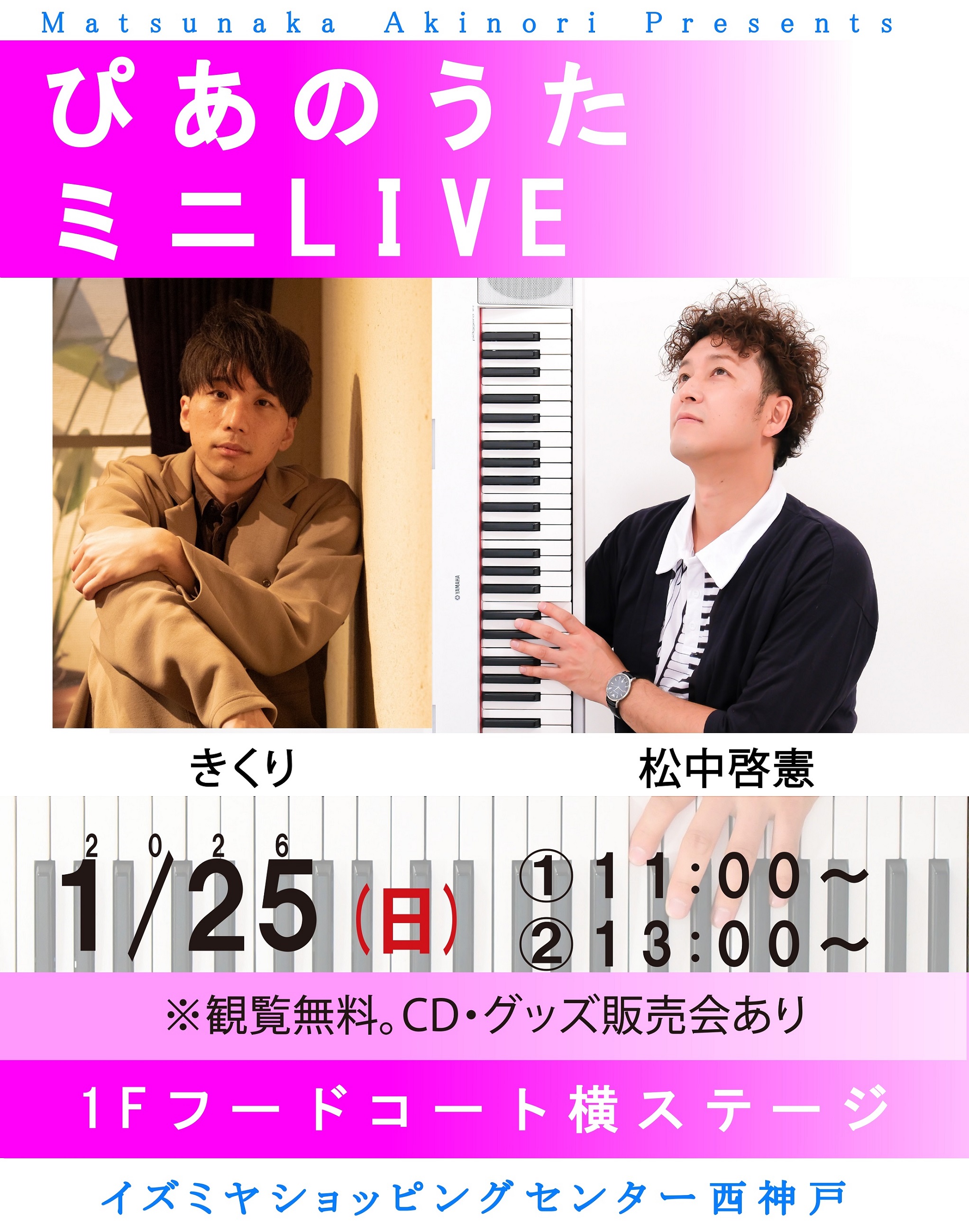 | ■1/25(日)「イズミヤ西神戸 ぴあのうたミニライブ」 | ここまで----------->|