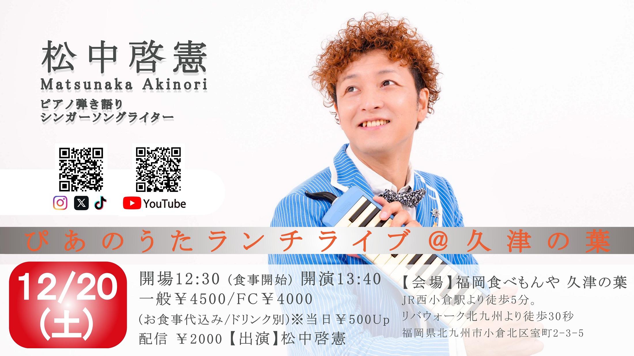 ■12/20(土) 「ぴあのうたランチライブ@久津の葉」 | ここまで----------->|