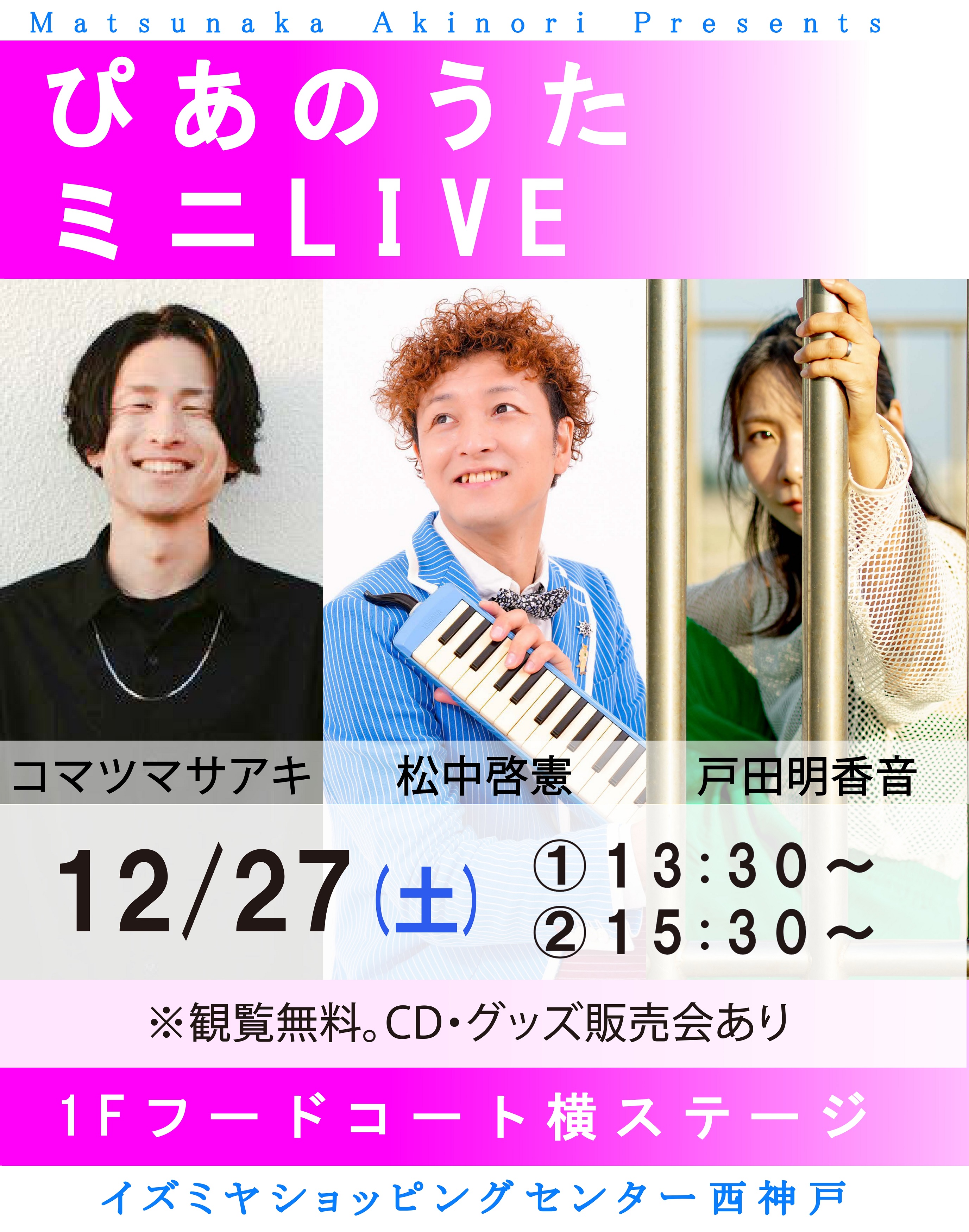 ■12/27(土)「イズミヤ西神戸 ぴあのうたミニライブ」 | ここまで----------->|