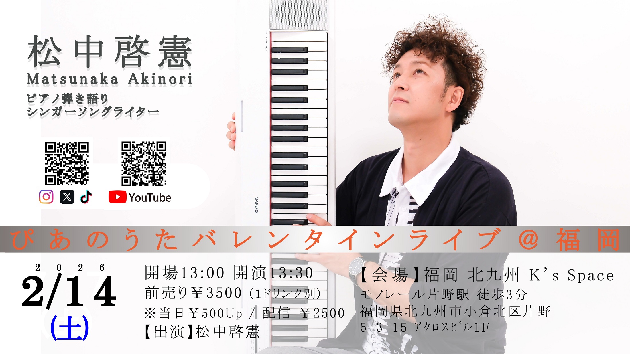 | ■2/14(土)「ぴあのうたバレンタインライブ@福岡」 | ここまで----------->|