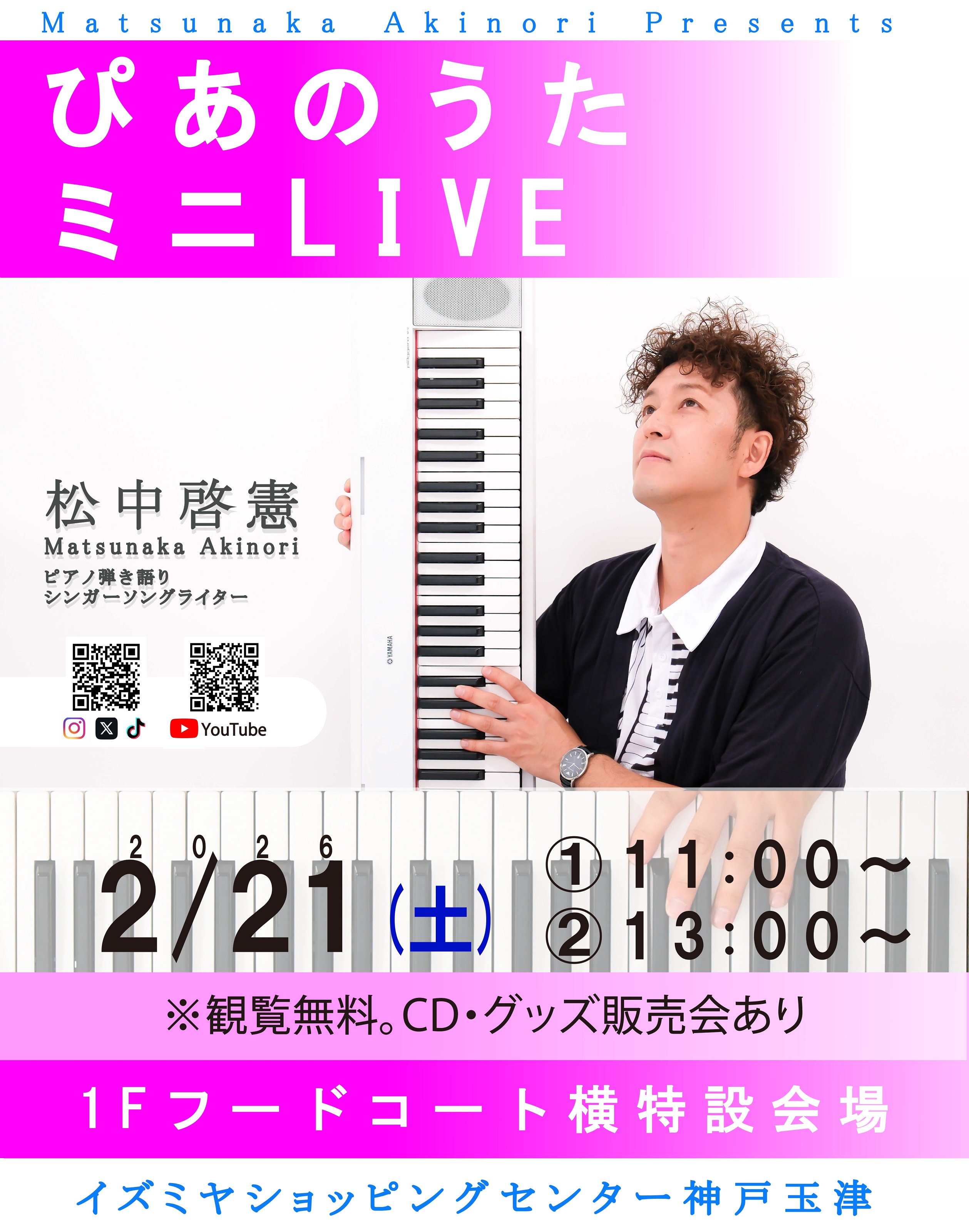 | ■2/1(日)「ぴあのうた ミニLIVE」 | ここまで----------->|